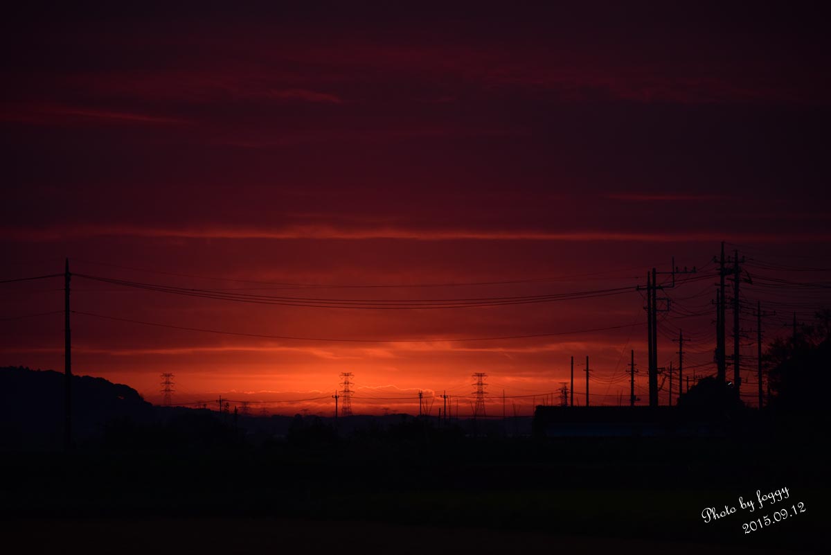 #102:朝焼けと鉄塔に電柱
