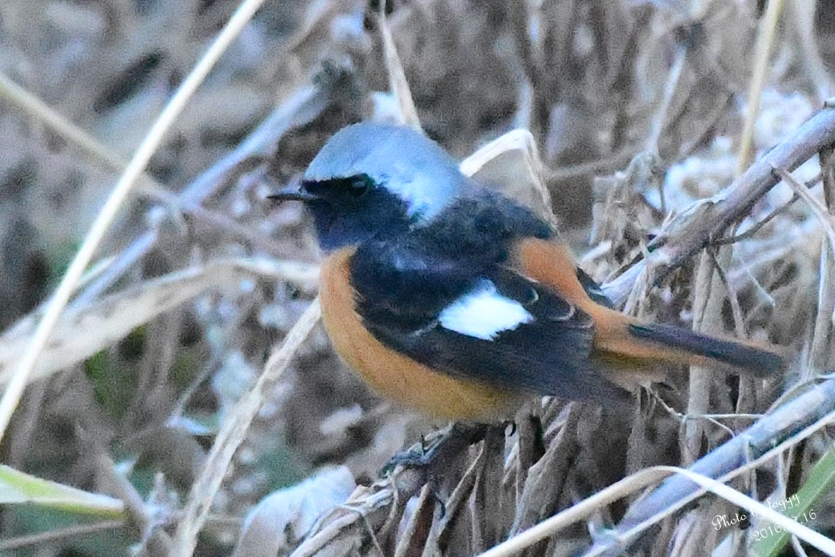 #104:まだ暗い手賀沼調節水門管理橋にジョウビタキ