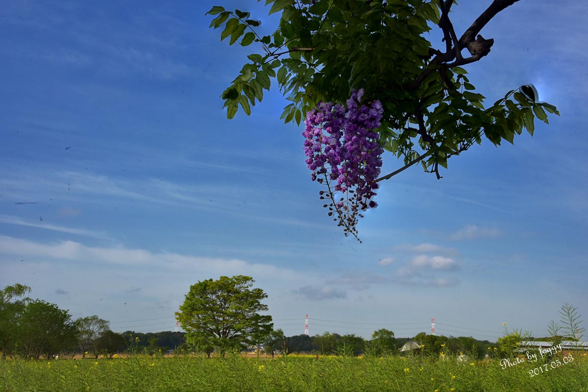 #103:青空に藤とケヤキ